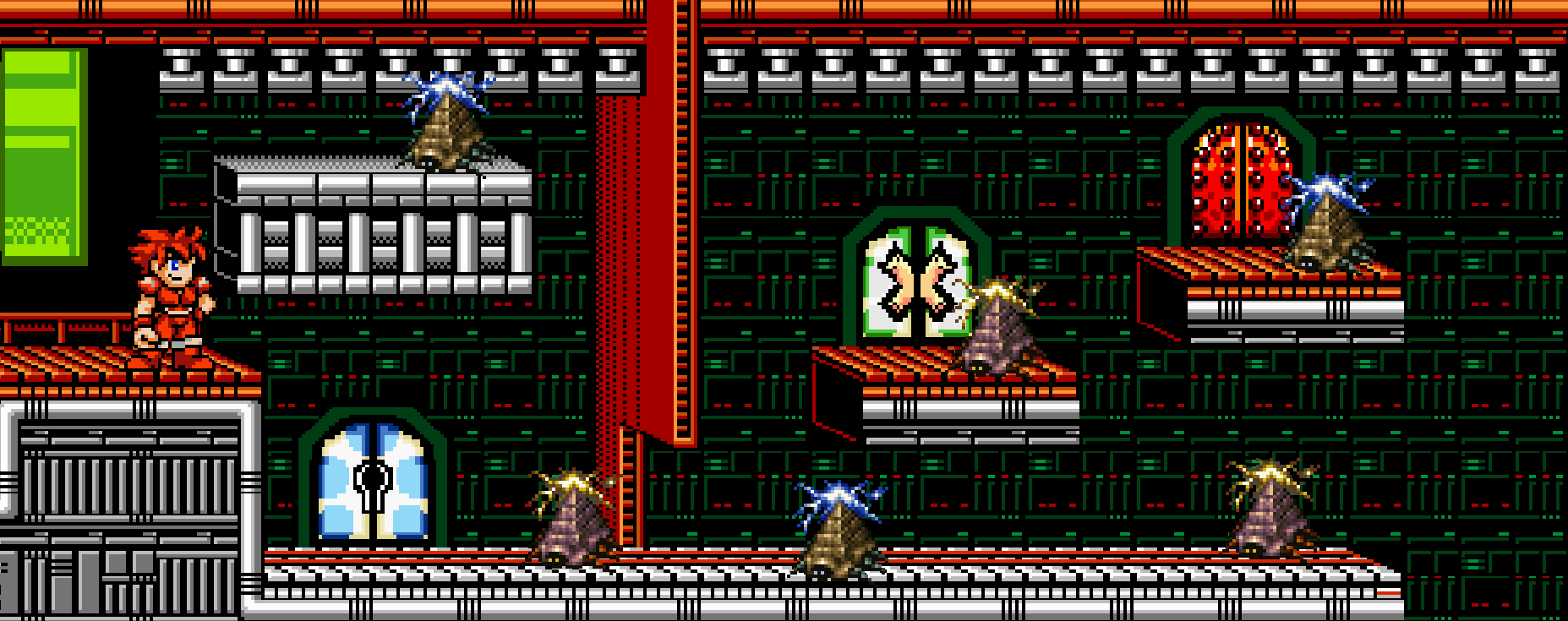 In the front half of the room, three doors lead to side chambers. One appears to be made of silver, one of iron, and one of brass. Luridans and Delta Bugs guard the doors, but they will be little threat to Jack.