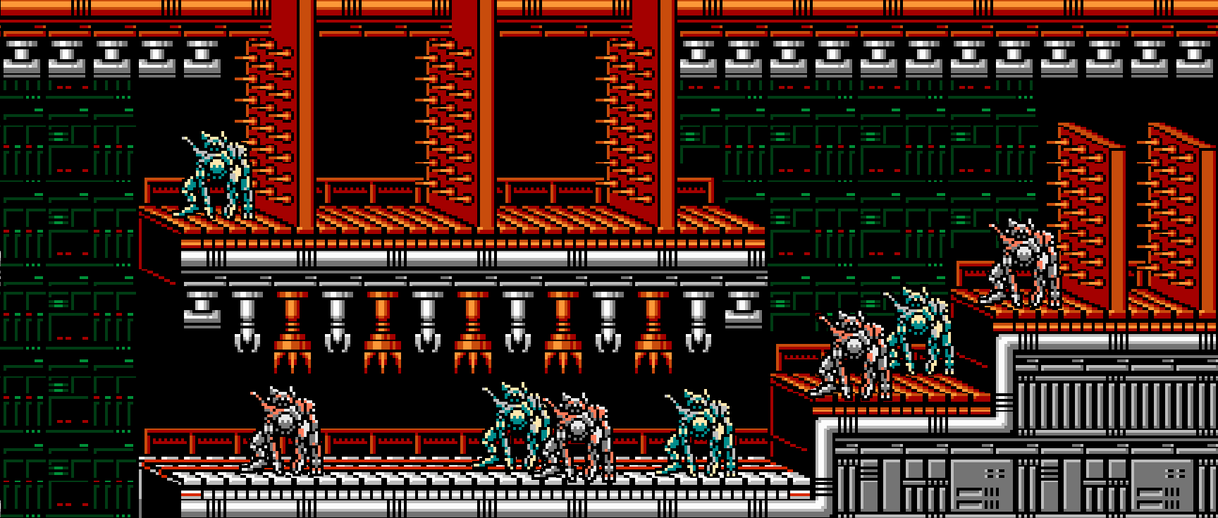 The heat seems to radiate from the pit and the noise definitely comes from the back of the room, where a bewildering and terrifying-looking array of machinery assembles Psi-Mechs. Spike-lined panels smash together to shape raw metal into carapaces, while whirling arms tipped with claws, ratcheting drivers, and pneumatic hammers assemble the carapaces. As a final touch, jets squirt living brains into the humanoid shells to animate them into the semi-sentient shambling horrors. Jack has never seen anything so gruesome and inhuman.
