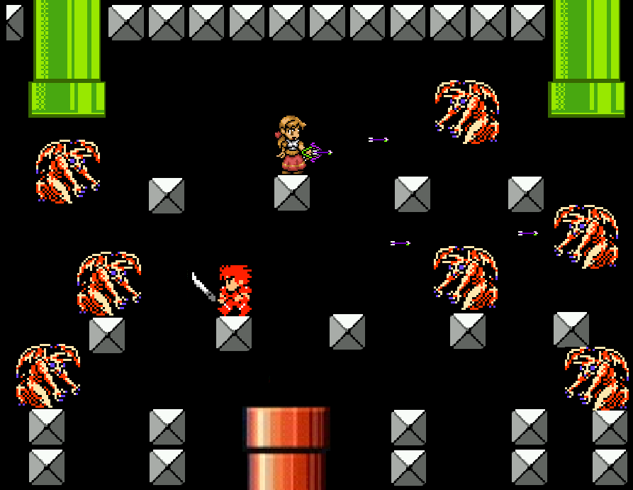 The Perilisks, seeing their approach, scream among themselves and prepare to dive. Samira takes out two with her arrows, while Jack flings the Dancing Dagger of Danzibar at the nearest and dodges a second. In this way, by picking them off one at a time from a place of shelter, Jack and Samira are again able to defeat a much larger force. With the Perilisks defeated, Jack sheathes the Dancing Dagger and draws the Rune Sword, preparing to leap for the Green Pipe that partitions the alcove. Suddenly Samira clutches his shoulder.