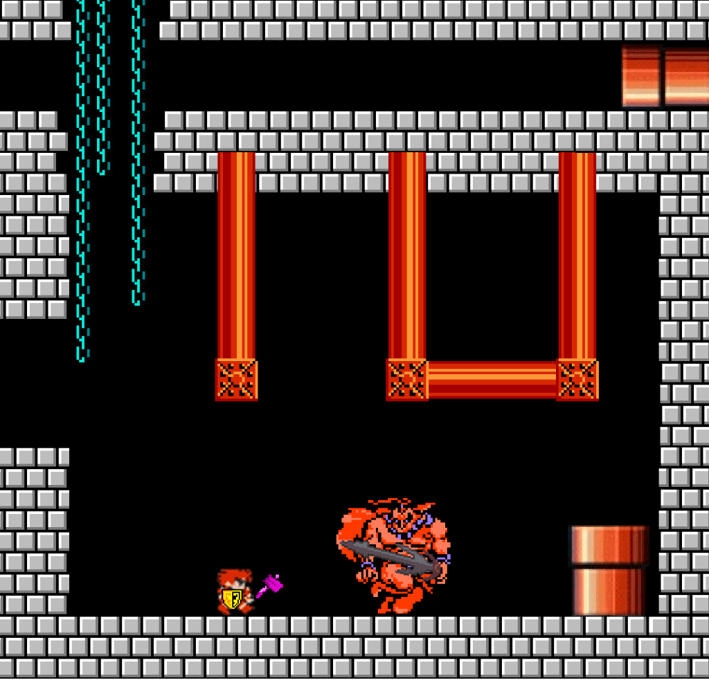 The Giant’s body explodes, ripped apart by the cruel machinery in the Red Pipe. Only his blood-stained sword remains. Not an exit after all.