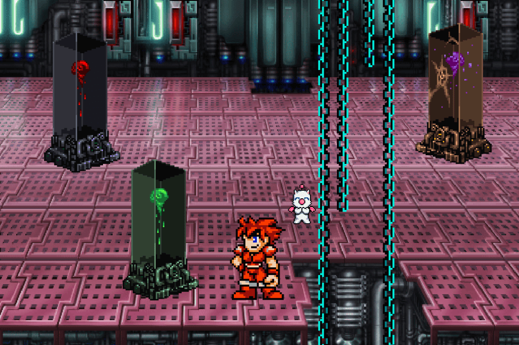 Jack inserts the keys at the bases of the columns one at a time and twists the keys. Each column goes dark. The fluid inside stops circulating and the brains descend into a limp pile at the bottom of each column. All around him, the humming sounds of computation and the whirring, grinding, clanking sounds of machinery stop. Jack listens to the silence for a long time, elation building in his heart. The factories are silent! The machinery that powered the dreaded Inferno Shafts, Tornado Shafts, and Psi-Mech factories has shut down. It seems Jack has defeated the castle itself.