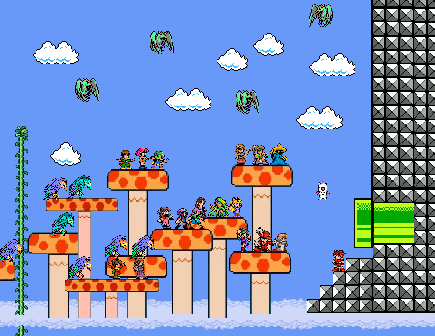 A crowd of spectators await his arrival and set up a loud cheer as he emerges haggardly from the Green Pipe. Princess Vasilisa, Sela-Ffionath, and the Lorikeet Guard are among them, as are Phae, the Giant Eagles, and –