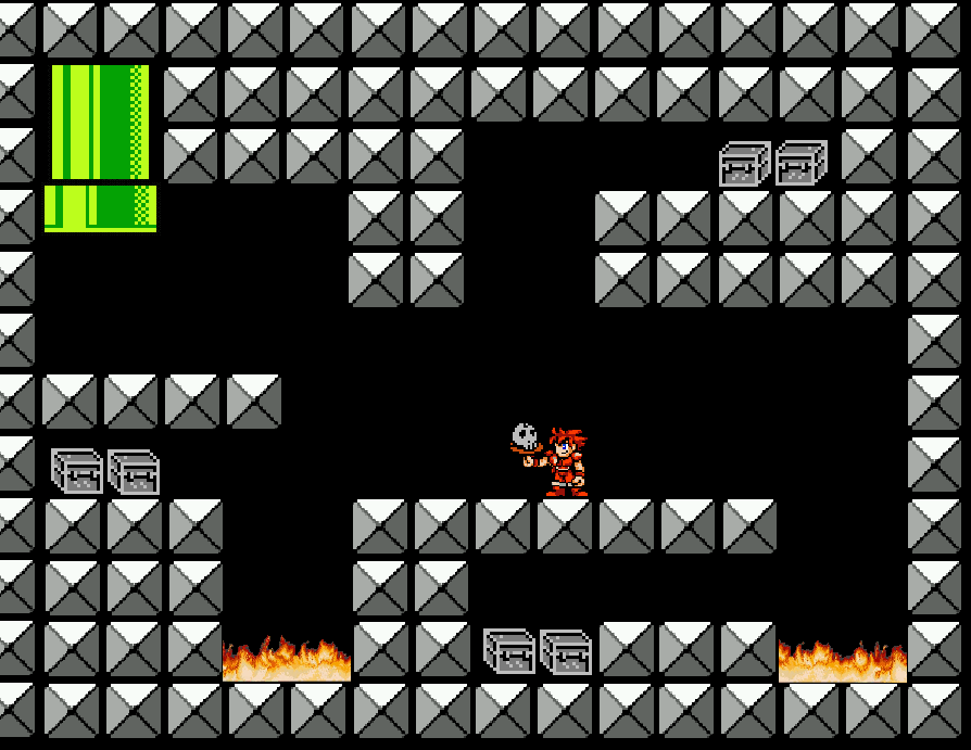 Finally, just under the shelf on which he stood when he entered – not a platform after all, but a projection from the wall – Jack discovers a third tiny alcove. This proves the hardest of the three to reach, for the shelf projects over the flame pit, creating a natural barrier to the alcove. With some ingenuity, Jack figures out how to swing himself over the lip of the shelf and essentially fling himself into the alcove. Here he discovers another pair of steel treasure chests – and a curiously carven human skull.