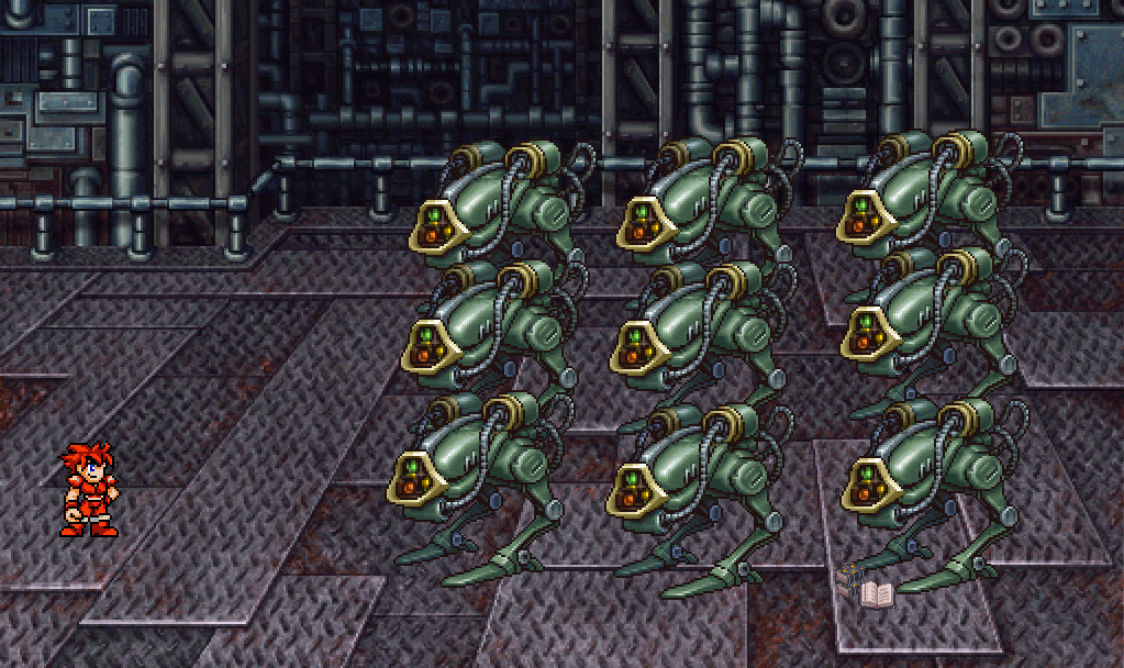 Through the Iron Door, Jack enters a large chamber with iron plates for a floor and a bewildering tangle of iron pipes covering every wall.