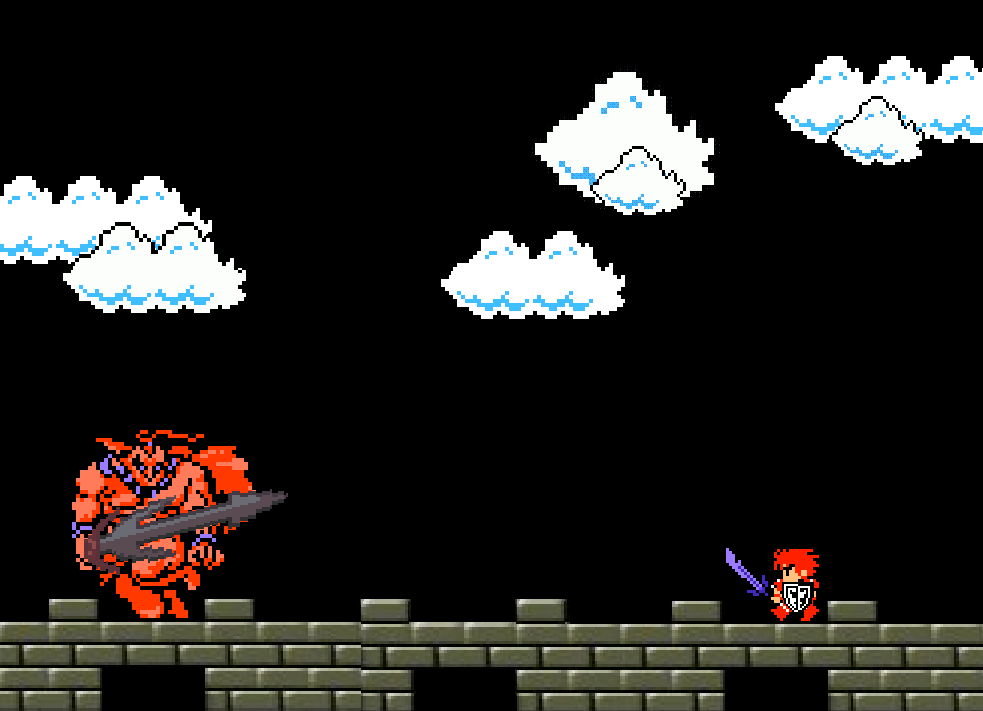 Jack scores two more cuts in quick succession, one a glancing blow to the Giant’s thigh, the second a much deeper cut to the Giant’s wrist. The huge broadsword clatters to the stone and the Giant stumbles back, clutching the wound. Jack sees fear in his eyes, and he presses the advantage, driving hard at the Giant’s face. The Giant trips and fetches up hard against the battlements, scant inches away from a miles-long fall to the earth.