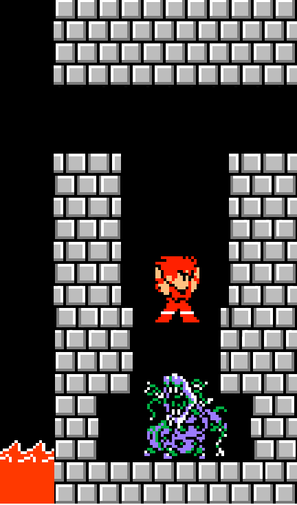Jack stows his hammer and shield so he can safely make the leap into the pit to rescue Princess Vasilisa.